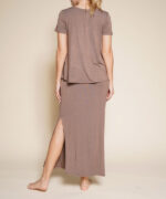 Indulge in sustainable fashion with our Long Bamboo Skirt. Crafted from eco-friendly materials, this skirt features a side slit detail and functional pockets for convenience. The elastic waist ensures a comfortable, stylish fit. Elevate your wardrobe with this elegant and environmentally-conscious piece.