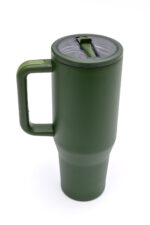 Quench your thirst in style with our No Spill 40oz Tumbler in Forest! This insulated tumbler is 10′ tall, made with vacuum-sealed stainless steel for long-lasting freshness, and features a leakproof lid and removable straw. Plus, its rubber anti-slip base keeps spills at bay. Perfect for on-the-go sipping!